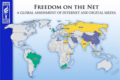 Theo phúc trình của Freedom House, các chính phủ kiểm duyệt internet gắt gao như Việt Nam hay Trung Cộng đã chuyển sang phương sách dùng các luật lệ của quốc gia để quy định những gì được hay không được phép thể hiện trên internet. Freedom House cho biết Việt Nam đã thông qua các nghị định đàn áp bất cứ ai dùng internet và các trang mạng xã hội để chỉ trích nhà nước.