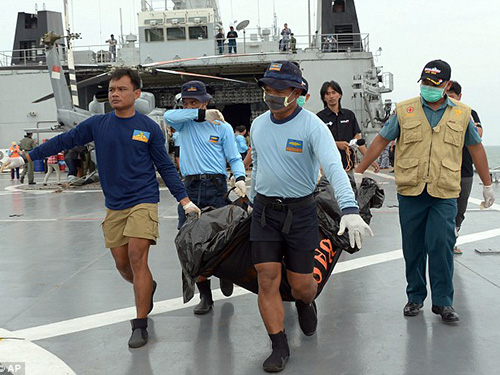 Đến nay vẫn chỉ có 30 thi thể được tìm thấy, không có thêm thi thể nào mới trong ngày 3-1, dẫn đến suy đoán hầu hết nạn nhân kẹt lại trong thân máy bay. Trong số thi thể phát hiện hôm 2-1, một số người còn ngồi trên ghế máy bay với dây an toàn thắt qua lưng. Bộ Y tế Indonesia lo ngại việc nhận dạng ngày càng khó khăn do thi thể bị ngâm nước quá lâu.