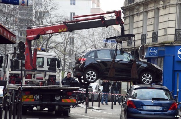 Chiếc xe 4 chỗ chở những kẻ khủng bố đến tòa soạn. Sau khi xả súng, chúng đã bỏ chạy khỏi hiện trường trên một chiếc xe khác.
