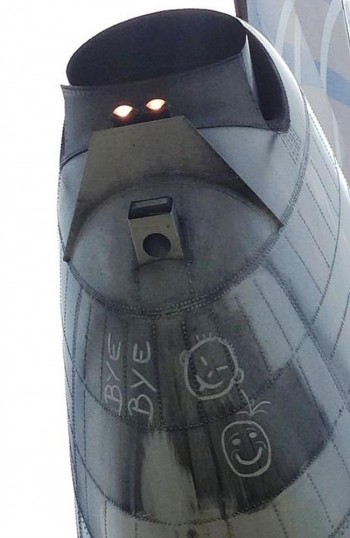 6 tháng trước, nhân viên đội bay trên chuyến bay này phát hiện dưới thân máy bay có dòng chữ “Bye bye” (Tạm biệt) và hình vẽ mặt cười chuyển sang mặt mếu. Lập tức, 13 nhân viên của tổ bay quyết định không thực hiện nhiệm vụ trên chuyến bay từ San Francisco đến Hồng Công. Mục đích là họ muốn tránh rủi ro cho bản thân và hành khách trên chuyến bay.