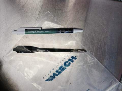 Mũi tên bắn vào đầu con mèo tội nghiệp đặt cạnh một chiếc bút