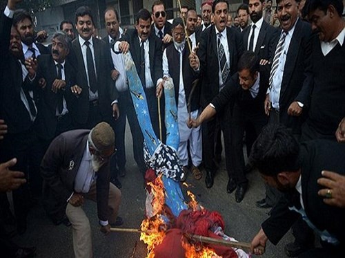 Tại Pakistan, nhiều người dân đã đốt hình nộm của ông Francois Hollande nhằm phản đối những phát biểu của vị Tổng thống Pháp