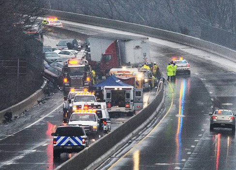 Hàng loạt xe đâm nhau trên một đường cao tốc ở Mỹ - Ảnh: Philly.com