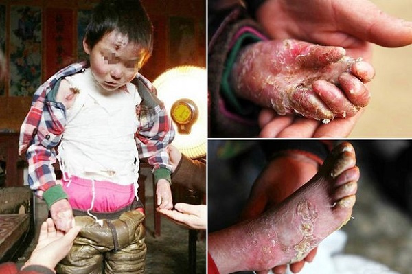 Đó là trường hợp của cậu bé Song Liuchen (8 tuổi) người Trung Quốc. Cha mẹ Liuchen là Song Zhongmin (43 tuổi) và Wang Xiaying (39 tuổi) cho biết ngay từ khi vừa sinh con, bác sĩ đã thông báo họ nên sớm chuẩn bị hậu sự cho đứa trẻ. Liuchen khi ấy khóc liên tục trong suốt 12 giờ do đau đớn vì những mảng da cứ tróc ra khi có người chạm vào.