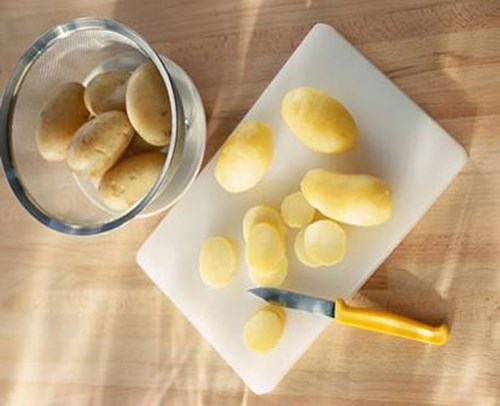 Cách trị mụn cám với khoai tây khá đơn giản, bạn chỉ cần cắt củ khoai tây thành từng lát mỏng và chà trực tiếp lên vùng da bị mụn. Hoặc bạn có thể đắp khoai tây xay nhuyễn lên vùng da mụn và vết thâm, để khoảng 20 phút, sau đó rửa lại bằng nước sạch.
