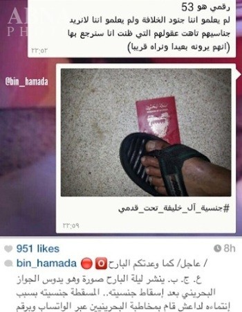 Những người không ủng hộ chính quyền, mặc dù bị tước bỏ quốc tịch Bahrain nhưng vẫn tự hào mình là người Bahrain. Trong khi đó, những kẻ theo ISIS nói rằng quốc tịch Bahrain đối với chúng chỉ là rác rưởi.