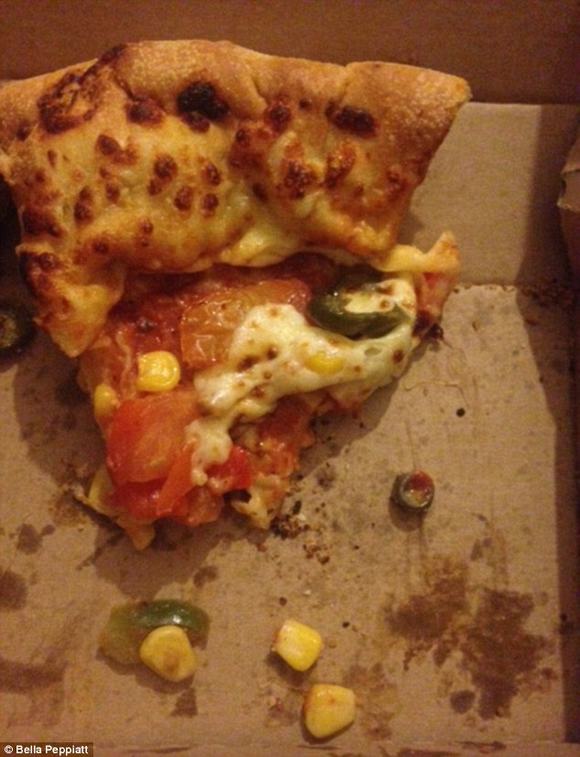 Bella Peppiatt đã cắn vào chiếc ốc vít ở trong bánh pizza Dominos. Chiếc bánh được cô mua từ cửa hàng Dominos ở Tilehurst, Berkshire.