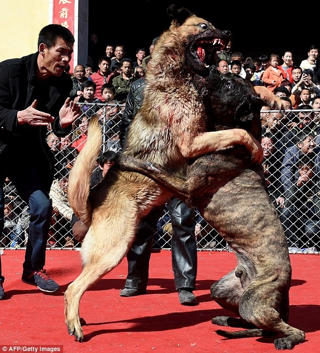 Vietbf.com - Mỗi dịp đầu xuân ở Trung Quốc có lễ hội chọi chó và hàng ngàn người tụ tập xung quanh và hàng rào bằng sắt để người dân xem những con chó cắn xé nhau tới khi chúng chết..