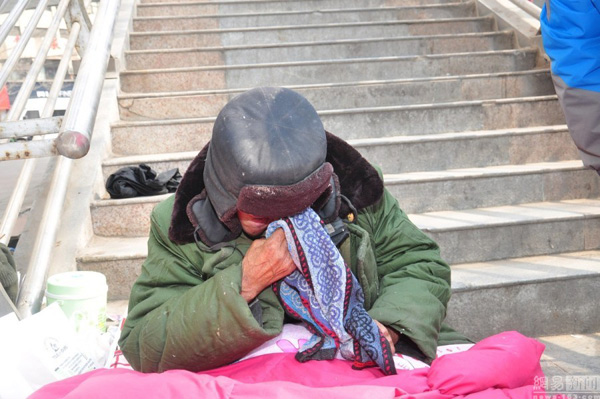 Trong hình ảnh được chia sẻ lên mạng xã hội là một cụ ông vô gia cư với khuôn mặt bê bết máu tại Trịnh Châu, Trung Quốc.
