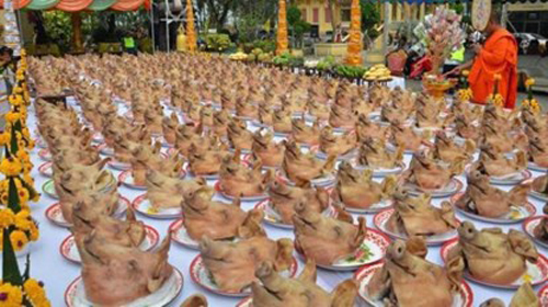 Câu chuyện bắt đầu từ một phụ nữ người Thái Lan đã dâng 300 đầu heo lên một ngôi chùa. Lý giải về hành động của mình, người phụ nữ này cho biết mình làm vậy không phải là để chơi trội mà chỉ là sự thành tâm để làm ăn phát đạt: “Trước đây tôi làm ăn thua lỗ lại bị khách nợ đầm đìa, tôi đã đến chùa này cầu thần linh phù hộ sớm vượt qua khó khăn về tài chính. Vài năm sau, tôi không những thu hồi được các khoản nợ mà còn làm ăn phát đạt, nên năm nay đến chùa làm lễ tạ ơn”, chủ nhân của lễ vật 300 đầu heo cho biết.