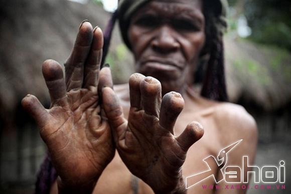 Một số hình ảnh về tục chặt ngón tay người sống khi có người chết của bộ lạc Dani: