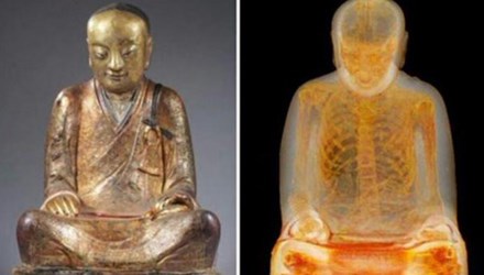 Các nhà khoa học Hà Lan phát hiện xác ướp bên trong bức tượng Phật nhờ áp dụng công nghệ quét CT và đồng thời phát hiện những mẩu giấy có chữ Trung Quốc.