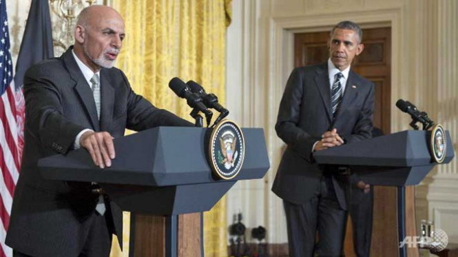 Tổng thống Barack Obama (phải) và tổng thống Afghanistan Ashram Ghani tại Nhà Trắng ở Washington. Ảnh: AFP