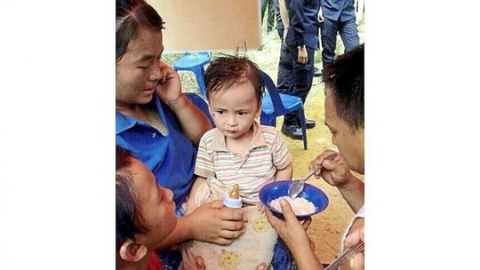 Các thành viên trong gia đình cho Healezry ăn sau khi cậu bé được cứu và đưa về nhà.