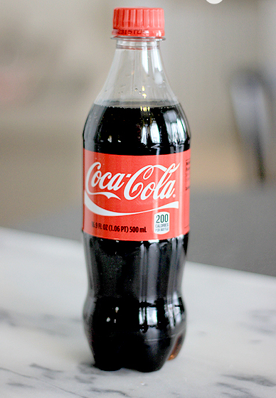 Đổ nước coca cola vào chảo trong vòng vài giờ, sau đó rửa lại với nước rửa bát, chà sạch.