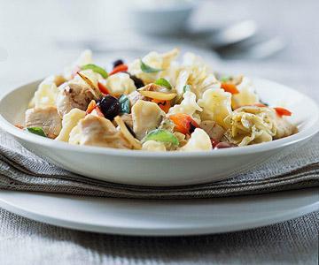 Cho mì vào luộc cho đến khi sơi mỳ mềm vừa ăn, sau đó vớt mỳ ra bát để nguội và trộn vào đó một ít dầu ô liu.
