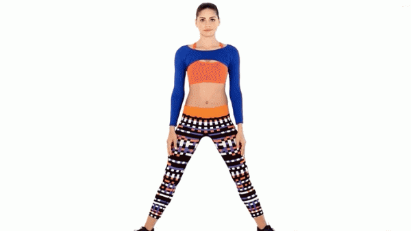 Đứng với chân rộng hơn chiều rộng vai của bạn. Xoay bàn chân 45 độ ra phía ngoài và gập đầu gối của bạn, để cho hông của bạn song song với sàn nhà.