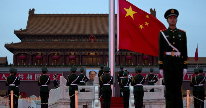 Nghi lễ thượng cờ tại quảng trường Thiên An Môn. Ảnh AP/ Alexander F. Yuan