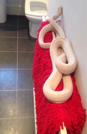 Old  Default Giật mình phát hiện rắn trắng lớn ngủ trong thảm nhà tắm