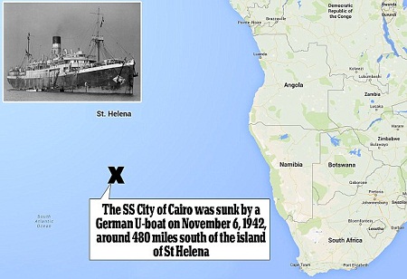 Con tàu SS City of Cairo đang trong chuyến hải trình từ Bombay, Ấn Độ tới Anh hồi năm 1942 thì bị trúng ngư lôi của tàu ngầm Đức ở ngoài khơi vùng biển thuộc đảo St. Helena, khiến 100 tấn tiền xu gồm toàn các đồng rupi bị chìm xuống đáy Đại Tây Dương.