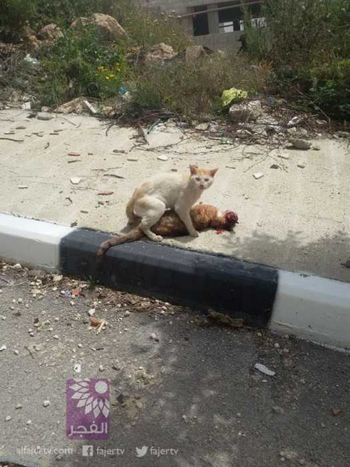 Theo đó, vào ngày 15/4, 1 chú mèo bị ôtô đâm chết nằm giữa đường phố ở vùng ngoại ô thành phố thành phố Tulkarem, Palestine.