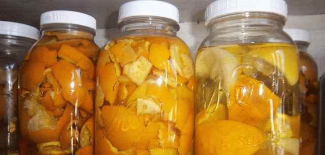 Làm đầy lọ với vỏ quýt, cam, chanh, bưởi hoặc chanh.