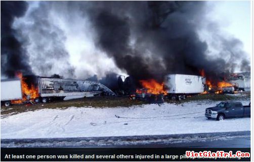 Sương mù dày đặc và tuyết tan là nguyên nhân gây ra vụ hàng chục xe tông nhau liên hoàn gây cháy nổ sáng 20.4 tại bang Wyoming (Mỹ) làm một người chết, hàng chục người bị thương.