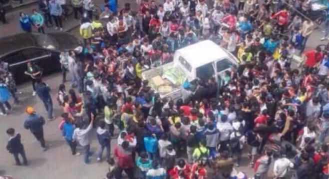 VBF-Quá bức xúc trước hành vi cưỡng chế và đánh đập một phụ nữ bán rong của đội quản lý đô thị khoảng 1000 học sinh đã đứng ra can thiệp. Họ đã quá bất ngờ trước sức ép cực lớn từ phía học sinh này đành phải lên ô tô lẩn trốn.Gần 1.000 học sinh đã đổ xuống đường để bao vây xe của đội quản lý đô thị sau khi họ ức hiếp một bà bán chuối trước cổng trường ở thành phố Chiêu Thông, tỉnh Vân Nam, Trung Quốc.
