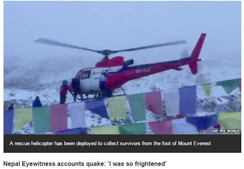 Trực thăng sơ tán người leo núi mắc kẹt trên ngọn Everest, ngày 26.4 - Ảnh chụp màn hình BBC