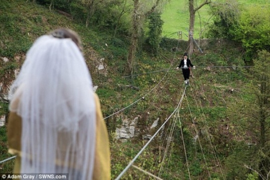 Anh Chris Bull (37 tuổi) và chị Phoebe Baker (25 tuổi) đến từ thị trấn Hanham, TP Bristol, đã có một lễ cưới lãng mạn ở khu vực miền núi Wookey Hole Caves, hạt Somerset - Anh. Họ dự định trao lời thề ước ở độ cao hơn 24 m so với mặt đất, trở thành cặp đôi đầu tiên ở Anh tổ chức đám cưới trên dây. Tuy nhiên, 100 quan khách tham dự vẫn ngồi ở bên dưới.