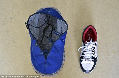 16 năm nay anh Liu phải mang đôi bàn chân khấp khiểng.