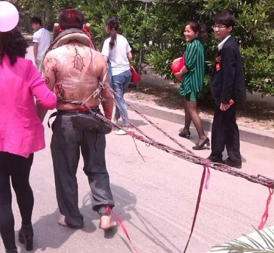 Mới đây, những hình ảnh kỳ lạ tại một đám cưới ở tỉnh Hà Nam (Trung Quốc) xuất hiện trên Dailymail gây ngạc nhiên cho nhiều người. Thậm chí nó còn bị dự luận lên án dữ dội và nhanh chóng lan truyền khắp nơi trước cảnh bố mẹ đóng làm trâu bò kéo siêu xe hoa cho cô dâu chú rể.