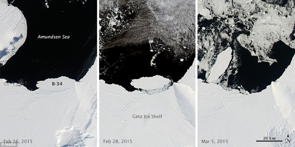 Tảng băng này dượcd đặt tên là B-34, được vỡ ra khỏi khu vực B của Nam Cực, hiện đang được theo dõi bởi tổ chức thiên văn thế giới. Tảng băng này nhỏ hơn so với một tảng băng tên B-15 đã vỡ tách ra từ tháng 3/2000.