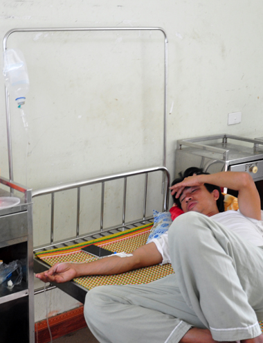 Anh Khôi đang được truyền dịch giải độc ở Bệnh viện đa khoa Quảng Ngãi.