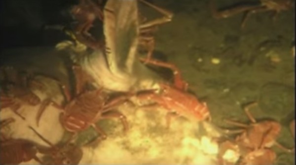 Những loài tôm, cua ăn xác chết dưới biển cần nhiều oxy hơn so với những sinh vật nhỏ bé dưới biển. Bên cạnh đó, phần miệng của các loài động vật nhỏ lại không đủ mạnh, cứng để rỉa được da của con heo.