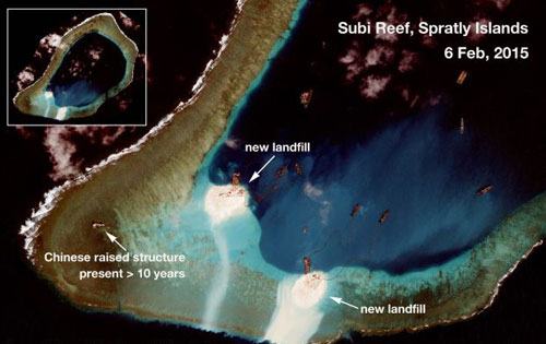 Tháng 3/2015, báo Inquirer, Philippines đăng ảnh TQ cải tạo bãi đá ở Trường Sa của Việt Nam