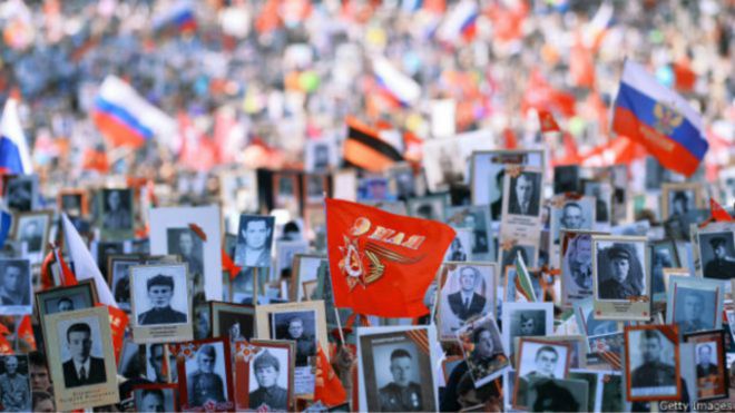Tại Mạc Tư Khoa trong lễ duyệt binh người Nga mang ảnh của ông bá cố để làm .... ăn mày dĩ vãng theo lệnh Putin.