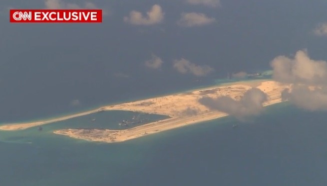 Đảo nhân tạo mà Trung Quốc xây dựng trái phép ở Biển Đông. Hình ảnh từ máy bay do thám Mỹ (Nguồn: CNN)