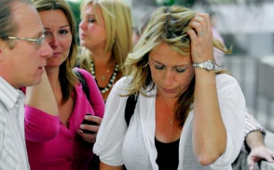 Mẹ của cô gái Sarah Key-Marer, 46 tuổi, một công dân Anh, di cư đến Hoa Kỳ, òa khóc nức nở khi bản án được tuyên tại tòa án tối cao Los Angeles.