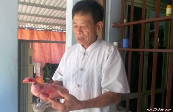 Một con heo mẹ đã đẻ một con heo có mình heo đầu gà khiến cả Thanh Hóa xôn xao.