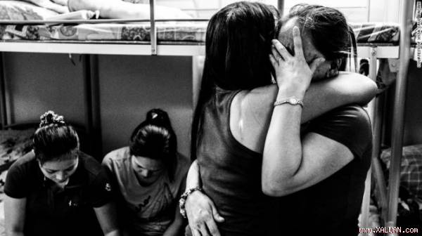 Hai người giúp việc ôm nhau khóc nức nở trong trung tâm Bethune khi kể về cảnh bị chủ hành hạ - Ảnh: CNN