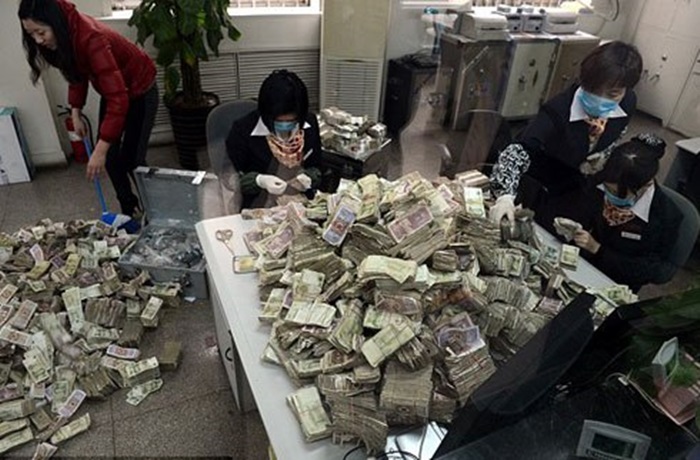 Những nhân viên ngân hàng đã mất hàng giờ để đếm và sắp xếp toàn bộ số tiền khách hàng mang tới. Sau khi những hình ảnh nói trên được đưa lên mạng, nó đã thu hút sự chú ý đặc biệt của của cư dân mạng.
