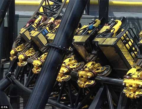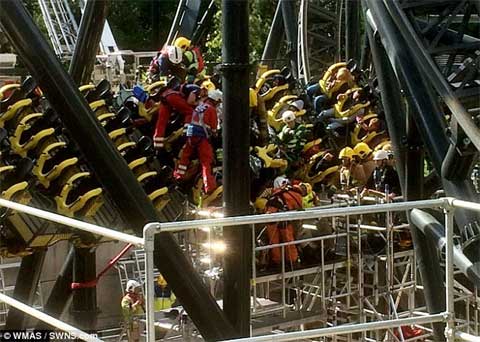 Chiều qua 2/6, một tai nạn khủng khiếp xảy ra tại công viên Alton Tower ở Staffordshire, Anh. Hai toa xe của tàu lượn siêu tốc đâm nhau trên đường lượn Ride, 4 người bị thương nặng, máu vương vãi khắp nơi. Nhiều người ngất đi vì sợ.