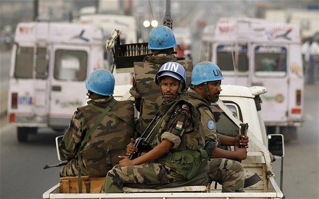 Lính gìn giữ hòa bình LHQ tuần tra ở Bờ Biển Ngà Ảnh: Telegraph
