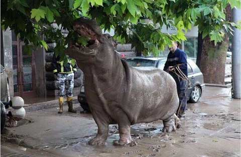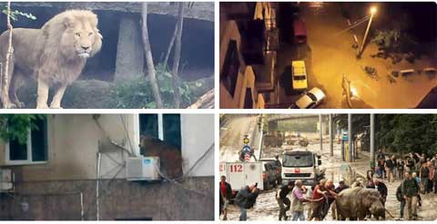 Vietbf.com - Thú hoang xổng chuồng hàng loạt vì mưa lớn tại Thủ đô Tbilisi của Georgia hôm 14/6 đang lâm vào cảnh náo loạn sau khi lũ lụt gây thiệt hại cho sở thủ của thành phố và khiến một loạt thú dữ tràn ra đường phố.
