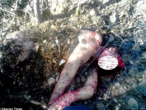 Một bức ảnh gây sốc do những người thợ săn chụp được sau khi giải cứu Pasternak cho thấy bà mẹ 3 con mình mẩy đẫm máu, với phần thân dưới đã bị chôn xuống đất.