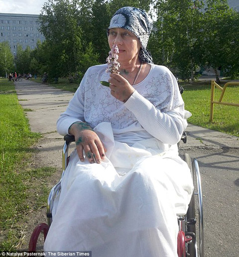 Hiện chị đã có thể đứng lên và đi lại chút ít nhờ sự giúp đỡ của con gái Ekaterina.