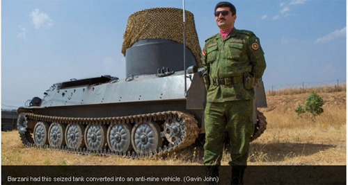 Không có loại xe bọc thép chống mìn chuyên dụng cần thiết cho các cuộc tiến quân vào lãnh thổ do IS nắm giữ, tướng Barzani dùng chiếc xe tăng này để nghiền các loại mìn tự chế trước khi phát huy công dụng của một chiếc xe tăng đúng nghĩa.