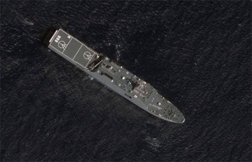 Những hình ảnh duoc vệ tinh chụp cho thấy, một chiến hạm Trung Quốc hiện đang neo đậu trái phép tại bãi đá vành khăn thuộc quần đảo Trường Sa của Việt Nam. Tuy không có công bố cụ thể là loại tàu chiến nào nhưng căn cứ vào số hiệu 999 của tàu vệ tinh cung cấp thì đây là tàu Tinh Cương Sơn thuộc loại 071. Đây là tàu thuộc dạng tàu vận tải đổ bộ binh lính và các phương tiện tác chiến khác.