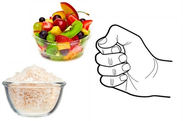 Hoa quả và tinh bột, bánh mỳ trong một ngày sẽ bằng một nắm tay hoặc quả bóng tennis là đủ.